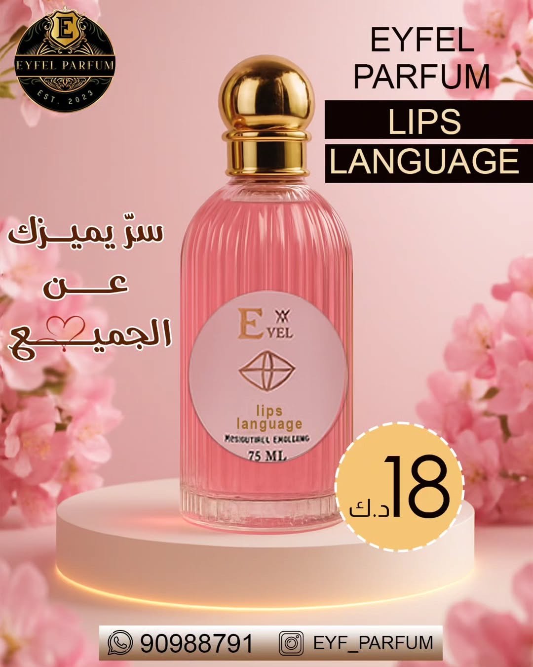 لمن يبحثن عن لمسة ساحرة تجذب القلوب وتأسر الأرواح، يأتي عطر LIPS LANGUAGE ليكون رفيق الأمسيات الحالمة والمواعيد الخاصة ، حيث تحتوي تركيبته على الفرمونات، تلك الروائح الخفية التي تتخطى الحواس لتصل إلى أعماق القلوب